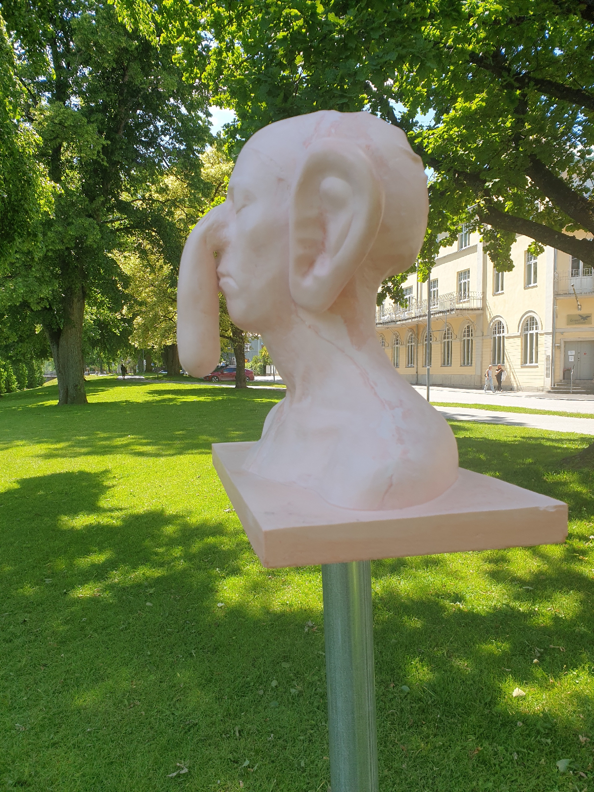 Alltså, konst är konst, när den är som mest konstig och det visar den här skulpturen. Näst efter banankuben så är den här den mest omdiskuterade här i stan. Utställningen håller på t.o.m. 22 augusti, så den här konstvandringen är inte köpt för evigt.